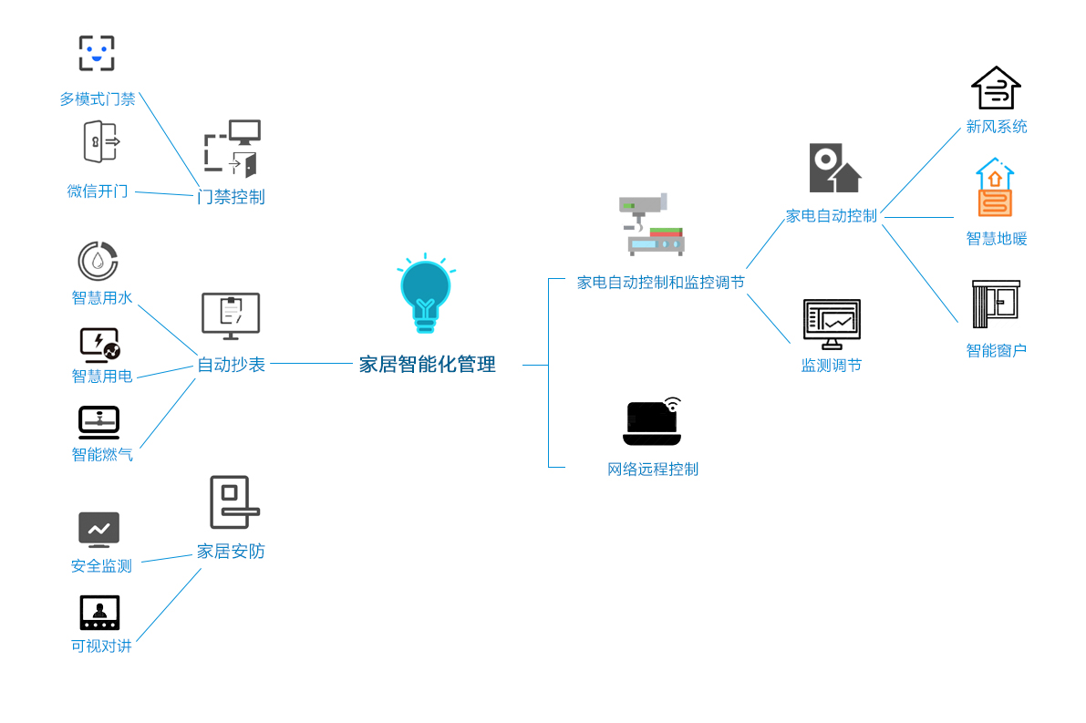 智慧房產(chǎn)板塊建設(shè)主要基于物聯(lián)云技術(shù)對家中智能電器實(shí)現(xiàn)一鍵掌控,實(shí)現(xiàn)居住功能升級(jí),打造綠色、節(jié)能、全面舒適的智慧生活。